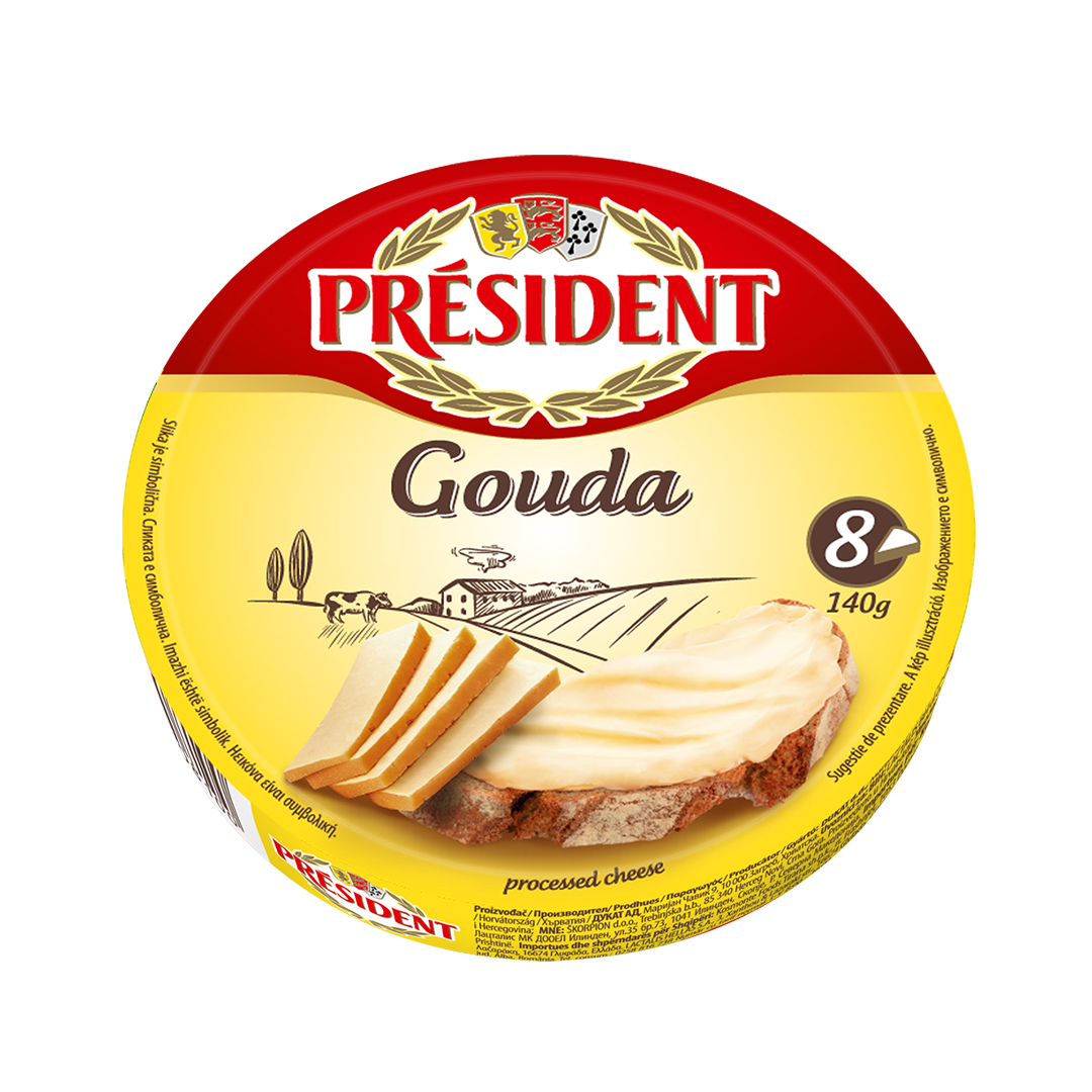 Плавлений сир з Гаудою Президент поєднує в собі вишукану м’якість і насичений смак, створюючи ідеальний акцент для ваших улюблених страв. Ніжна текстура, делікатний аромат і характерний смак Гауди роблять цей сир чудовим для гарячих сендвічів та тостів. Кожен порційний шматочок легко розгортається завдяки практичній індивідуальній упаковці, а чудове плавлення забезпечує апетитну тягучість і м’якість.