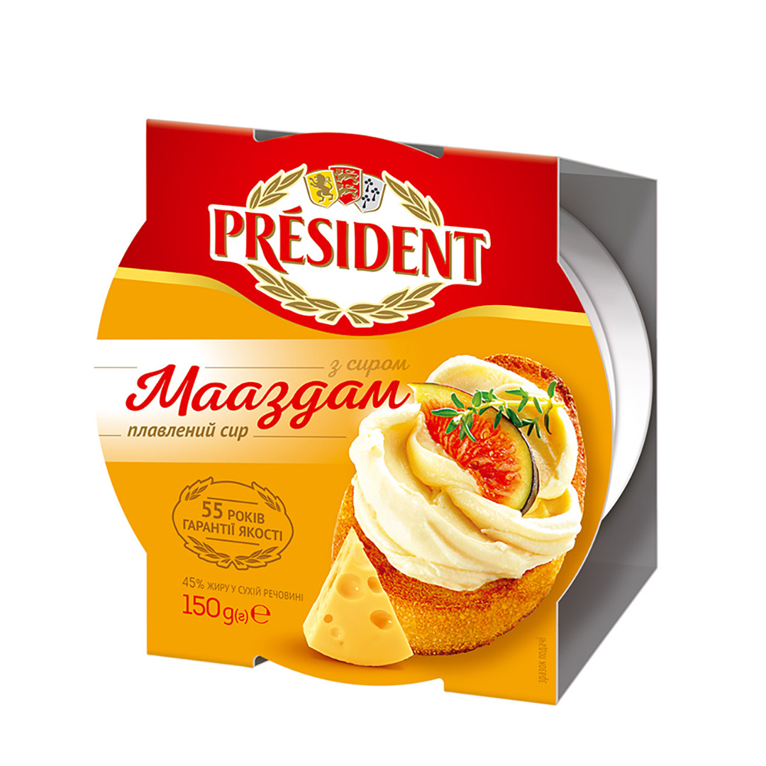 Надзвичайна кремова текстура з легким та приємним ароматом сиру-легенди Мааздаму. Кремова консистенція дозволяє легко намазати сир на хліб. Його можна подавати з діпами, крекерами, а також використовувати його для ваших кулінарних шедеврів.