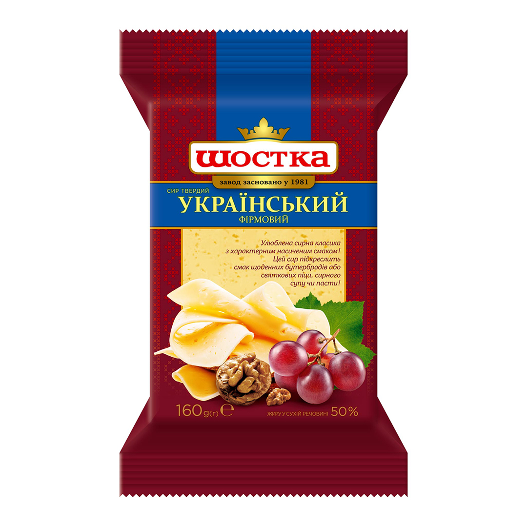 Створений з відбірного фермерського молока високої якості, сир «Український фірмовий» дозріває до 5-ти тижнів. Має неінтенсивний жовтий колір та маленькі «вічка» неправильної форми на зрізі.